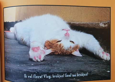 De eerste keer, dat was zo ontzettend raar. Je bent tenslotte gewoon thuis. Of tenminste vlak bij je eigen huis. Je staat een beetje aan een volle vuilniszak te ruiken. En daar komt iemand een auto uit en pakt jou – HOP! – op. Ik miauwde wat ik kon, maar ze verstonden me niet. En zo werd ik dus min of meer gekidnapt, die eerste keer …