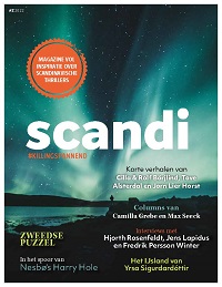 In de nieuwste editie van Scandi vind je o.a. een persoonlijk interview met Hjorth Rosenfeldt, korte verhalen van Jørn Lier Horst, Cilla & Rolf Börjlind en Tove Alsterdal, een leesfragment uit de nieuwe thriller van Helene Flood, inspirerende tips van boekverkopers, spannende puzzels, en niet te vergeten reistips voor het Hoge Noorden om bij weg te dromen.